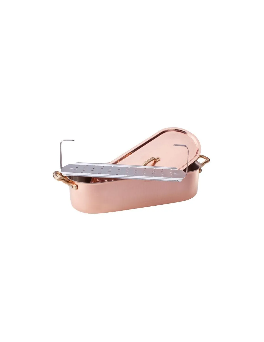 Pecera de cobre martillado y estañado a mano, de 2 mm de espesor, con dos asas de latón, tapa y rejilla, tamaño 40x10cm - ALCM118M40