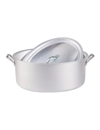 Cacerola ovalada con acabado mate, asas y tapa de aluminio, diámetro 28 cm.