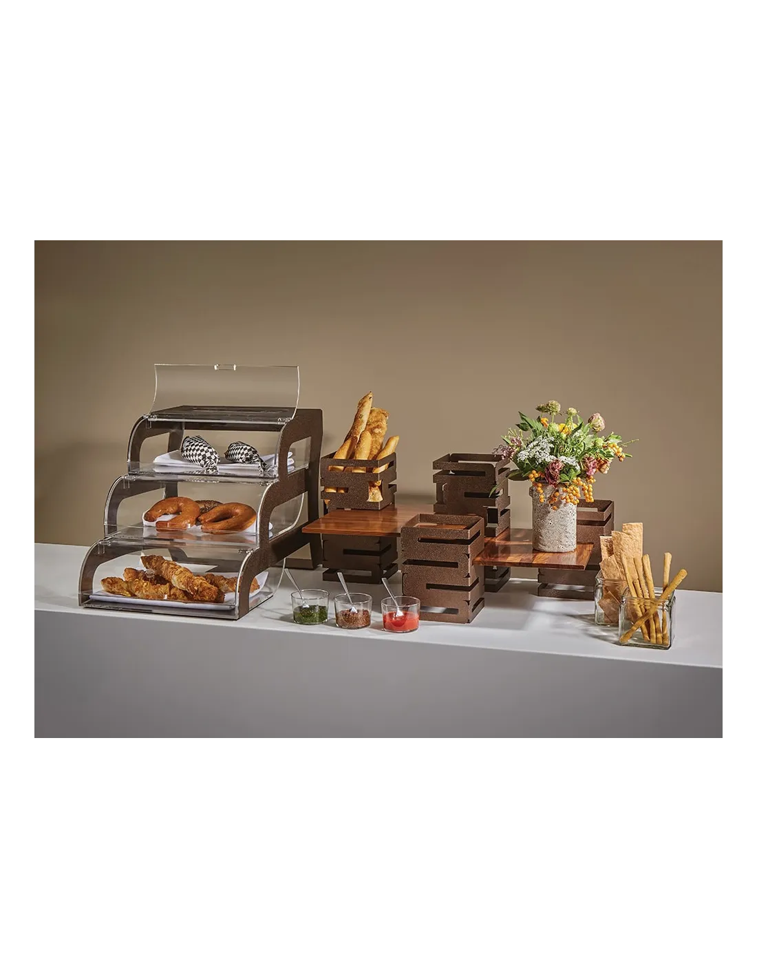 La Vitrina Expositora de Repostería en Tres Niveles con Marco Negro Mate de Rosseto es la solución perfecta para exponer tus productos de pastelería y snacks. Diseño sofisticado, fácil acceso y alta durabilidad.