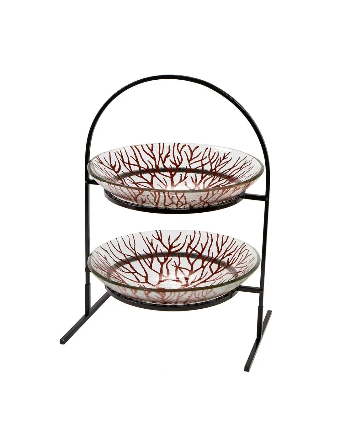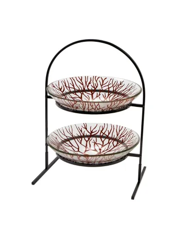 ROSSETO - GST08CFP - 2 Niveles Redondo soporte metal negro desmontable con 2 Radici Coñac 14" Redondo boles de vidrio