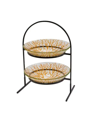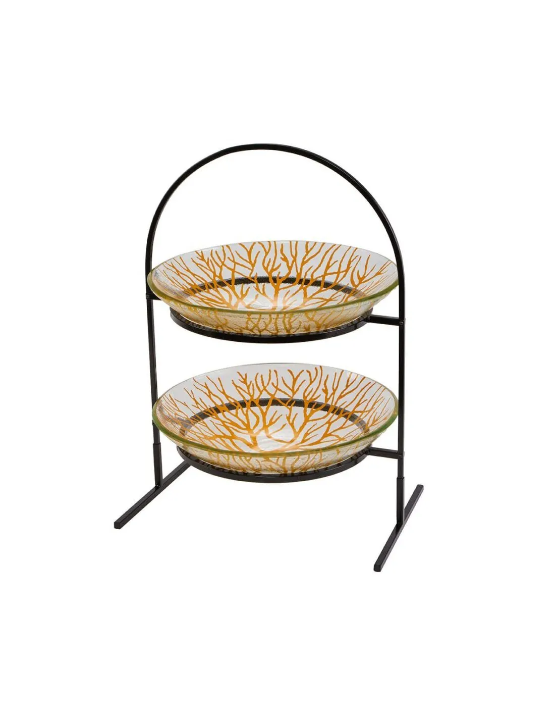 ROSSETO - GST08MFP - 2 Niveles Redondo soporte metal negro desmontable con 2 Radici Mostaza 14" Redondo boles de vidrio