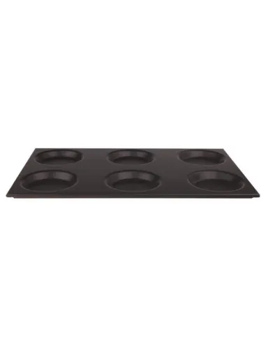 Bandeja de horno Gastronorm antiadherente con 6 moldes, diámetro 12,5 cm, 53 x 32,5 cm, altura 2 cm.