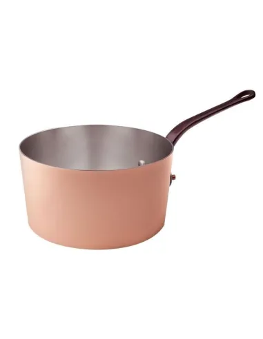 Cacerola alta de cobre liso estañado a mano de 2 mm, con un mango de latón fundido, diámetro 24 cm. - ALCU105G24