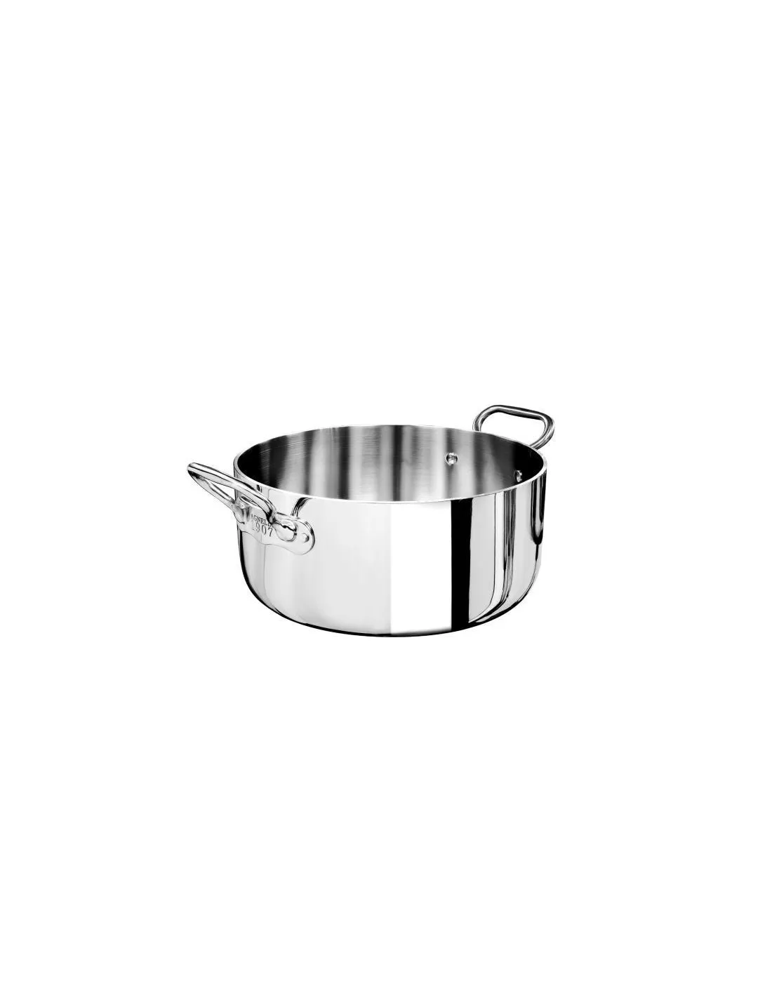 Cacerola baja Alu-inox 5-PLy pulido, para inducción con dos asas, diam. 24cm - ALUM110624