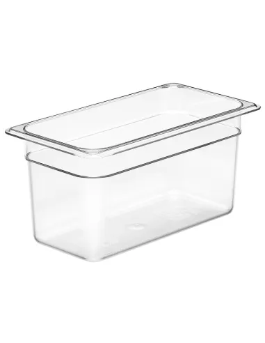 ¿Por qué elegir CAMBRO - 36CW-135 - Recipiente GN 1/3 5,3 L - 17,6 x 32,5 x 15 cm - Transparente? El recipiente CAMBRO - 36CW-135 es la solución perfecta para profesionales de la hostelería que buscan un producto resistente y higiénico. Fabricado en policarbonato, este recipiente no solo resiste temperaturas extremas sino que también cumple con las normativas más estrictas de seguridad alimentaria. Calidad Profesional CAMBRO CAMBRO es sinónimo de calidad en el sector de la hostelería. El recipiente 36CW-135 está fabricado en policarbonato, un material que ofrece una resistencia excepcional a temperaturas extremas (-40°C a 99°C). Además, su superficie interior lisa y no adherente facilita la limpieza y mantiene los alimentos frescos durante más tiempo. Usos Recomendados Este recipiente es ideal para el almacenamiento y transporte de alimentos en cocinas industriales, catering y otros entornos profesionales. Su diseño permite su uso en refrigeradores, congeladores y mostradores de alimentos sin condensación excesiva. Características Técnicas Resistencia a temperaturas extremas: El recipiente CAMBRO - 36CW-135 resiste desde -40°C hasta 99°C, lo que lo hace ideal para almacenar y transportar alimentos en cualquier condición. Su superficie interior lisa no adherente: Aumenta el rendimiento al facilitar la limpieza y evitar la adhesión de los alimentos. Además, las partes inferiores texturizadas resisten los rasguños, garantizando una larga vida útil. Cumple con normativas de seguridad alimentaria: Este recipiente cuenta con certificado NSF, lo que garantiza su cumplimiento con las normas de higiene y seguridad en la industria alimentaria. Además, cumple con la Norma EN-631.