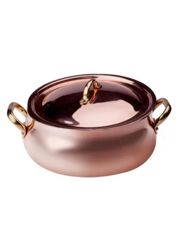 Cacerola baja, redondeada, de cobre de 2 mm, lisa y estañada a mano, con tapa, diámetro 24 cm - ALCU108C24